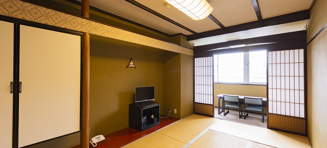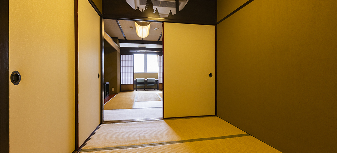 和室二間続きのお部屋にお布団を最大6組までご用意可能です。ご友人グループやご家族3世代旅行にもおすすめです。