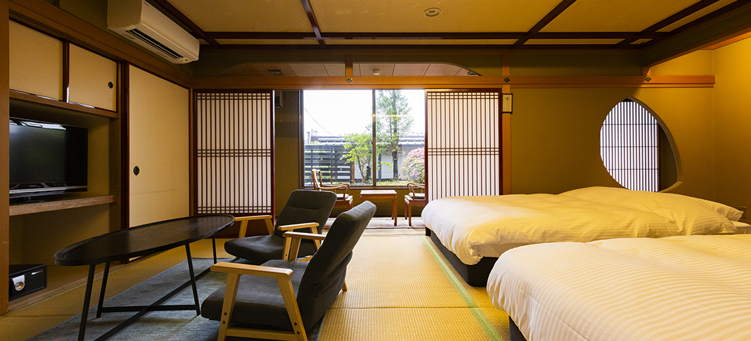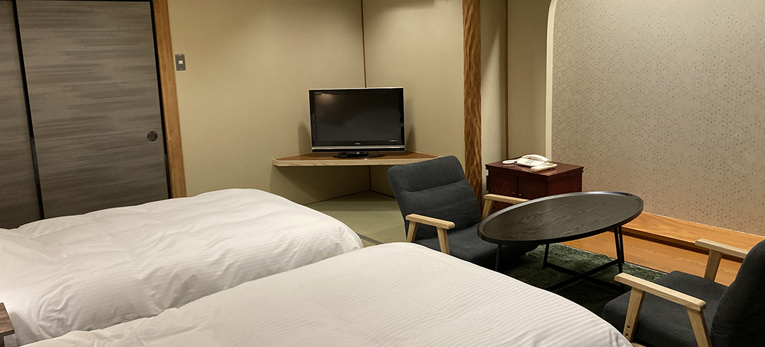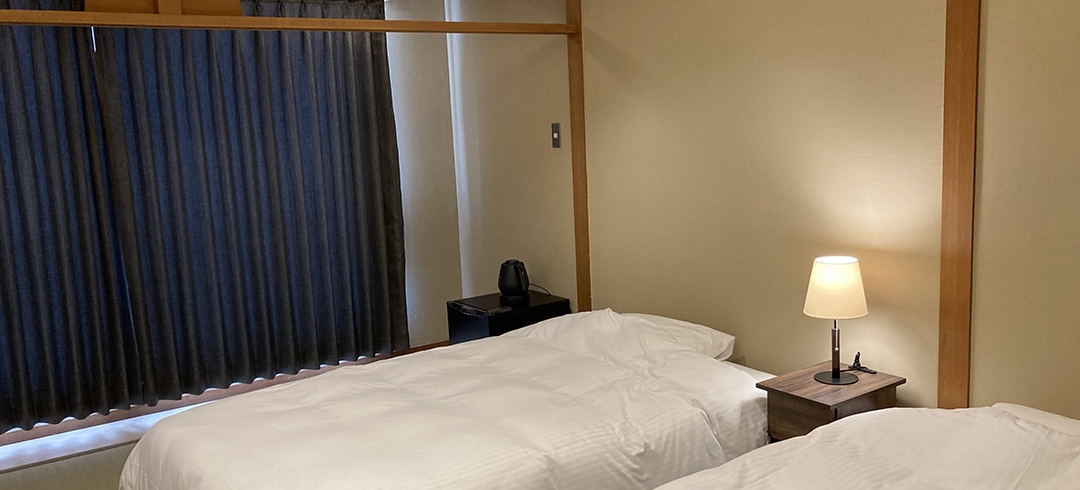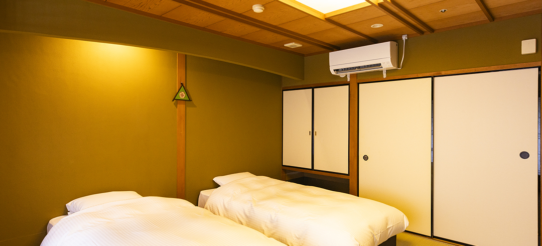 8畳の和室にツインベッドをご用意したお部屋です。カップルやお友達、ご家族とのご利用におすすめのお部屋です。