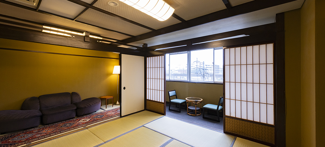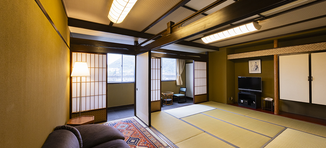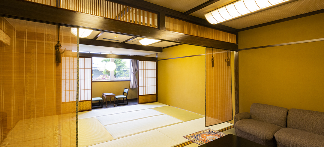 和室二間続きのお部屋にお布団を最大4組までご用意可能です。ご友人グループやご家族3世代旅行にもおすすめです。